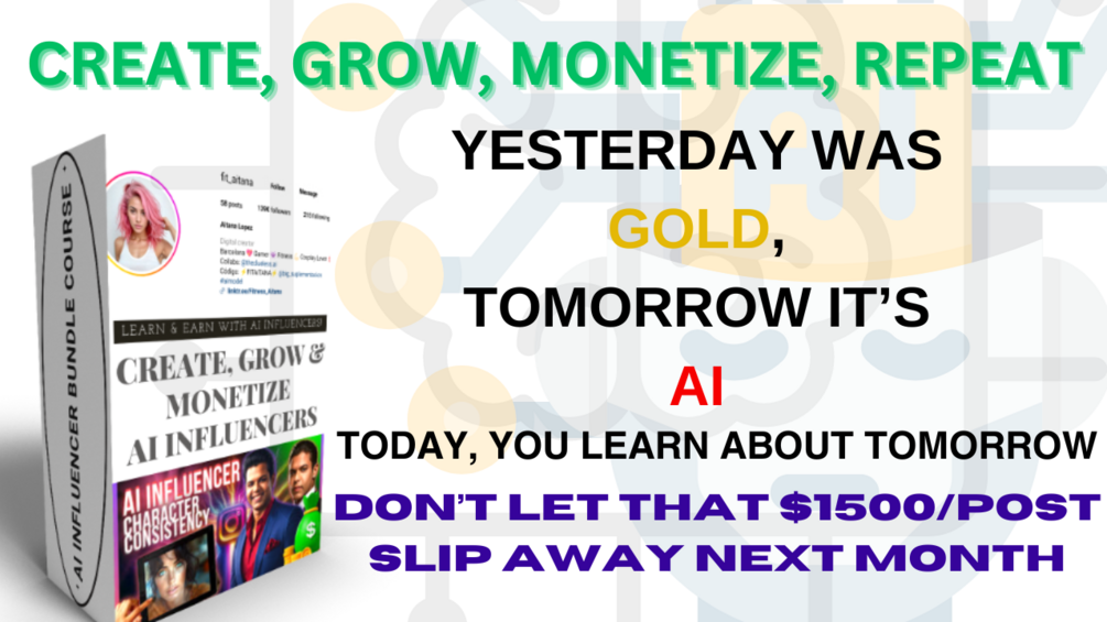 Join us in the Master AI Influencers course bundle and transform your social media presence today. Enroll now and take your creativity to the next level with the power of AI. Don't miss this opportunity to impress your audience, grow your following, and turn your digital influence into a profitable business!